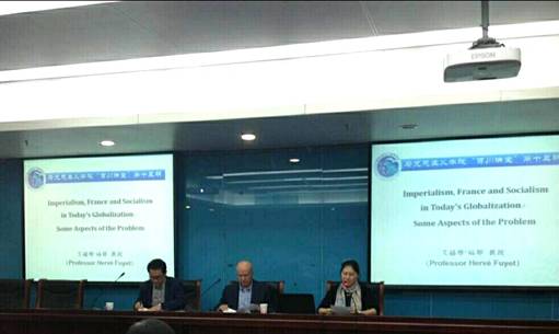 2016年10月20日上午,英国365集团公司建院十周年百川讲堂系列学术讲座暨列宁《帝国主义论》创作100周年纪念主题学术讲座在学术会堂702报告厅举行。法国学者艾赫维·福耶(HervéFuyet)教授应邀作了题为《当今全球化中的帝国主义、法国与社会主义:问题的几个方面》的专题学术报告。报告语言选用英语,报告由英国365集团公司副经理陈文娟副教授主持,张忠胜讲师担任现场中英文翻译。