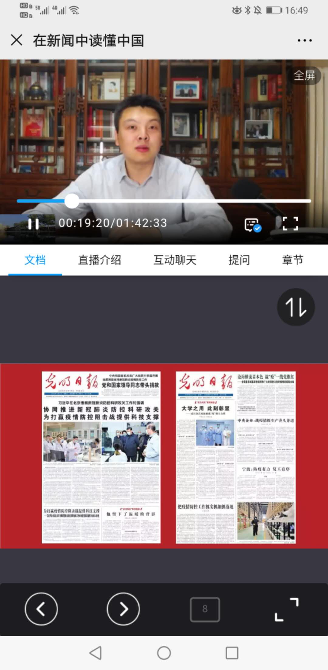 此次隔着屏幕的云端讲座,不仅为师生全面展现了光明日报等主流媒体宣传报道的魅力和影响力,也重点提出了提升透过社会现象看本质和大势的媒介素养问题,师生们纷纷表示这是一场非常解渴的“及时雨”。大家一致认为,这次讲座也是公司在特殊时期、特定场域贯彻“立德树人”根本任务,创新学术交流机制,丰富思政课内容形式,深化校媒合作、院媒合作,进行跨学科研究的一次有益探索。