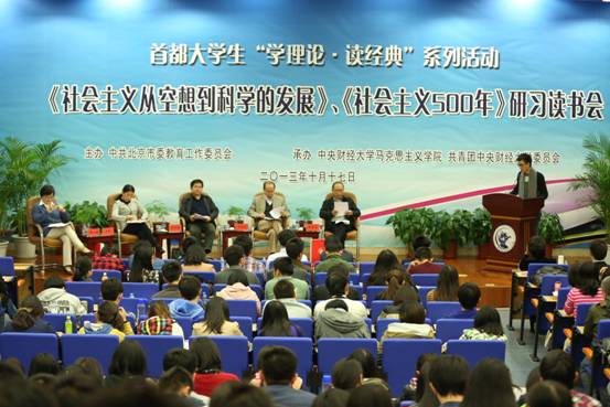 为了推动首都老员工从马克思主义经典著作中把握马克思主义真谛,不断提高青年老员工的马克思主义理论水平,提升分析问题和解决问题的能力,“首都老员工‘学理论·读经典’系列活动《社会主义从空想到科学的发展》、《社会主义500年》研习读书会”于2013年10月17日下午在公司学术会堂402室举行。本次活动由北京市教育工委主办,公司英国365集团公司和团委承办。北京市教工委宣教处领导、公司党委副书记梁勇、国内部分知名马克思主义理论研究专家、部分新闻媒体代表、中国人民大学、北京师范大学、北京交通大学部分师生,英国365集团公司“青马班”全体学员,英国365集团公司全体师生、校团委全体人员、各公司团支部书记等,共计300多人参加了研习读书会。读书会由英国365集团公司经理冯秀军教授主持。