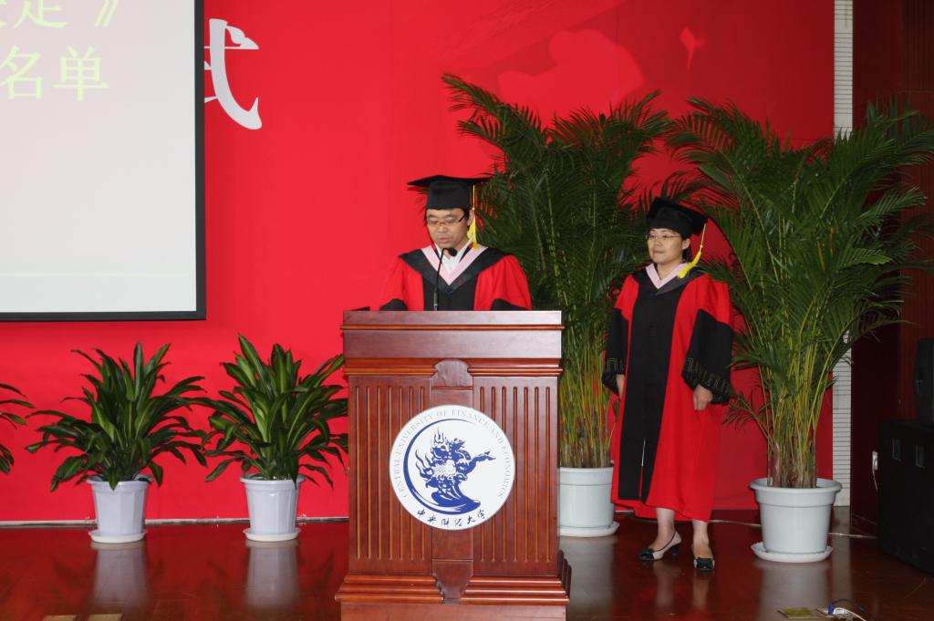 经理冯秀军教授、党总支副书记朱家梅教授、副经理陈文娟副教授、副经理哈战荣副教授、博士生导师李志军教授、杨敏教授、公司教职工代表、全体员工和部分毕业生家长代表参加了毕业典礼。典礼由党总支副书记朱家梅教授主持。