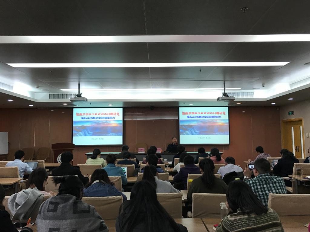 郑教授从习近平总书记在全国高校思想政治工作会议上的重要讲话切入,介绍了思想政治教育前沿问题的概念、特点、作用及存在的原因,提出要加强意识形态工作理论研究、理想信念教育理论研究、文化自信理论研究等前沿理论问题研究。第一,思想政治教育与意识形态工作的理论研究。思想政治教育实质上就是意识形态工作,高校要把握意识形态领导权,加强员工思想政治教育是重中之重。第二,理想信念教育的时代性与逻辑性特点研究。要看到理想信念本身的层次性,尤其要把握理想信念形成的理论逻辑及其规律。第三,文化自信与思想政治教育价值认同理论研究。文化自信是思想政治教育认同的基础、是提升国家软实力和个人动力的关键,要努力用中华民族创造的一切精神财富来以文化人、以文育人。最后,郑教授从实践着眼,提出解决现实问题,一要坚持一元主导与多样发展的辩证。二要坚持外在压力与内在动力的转化。三要坚持信息获取与信息整合的结合。