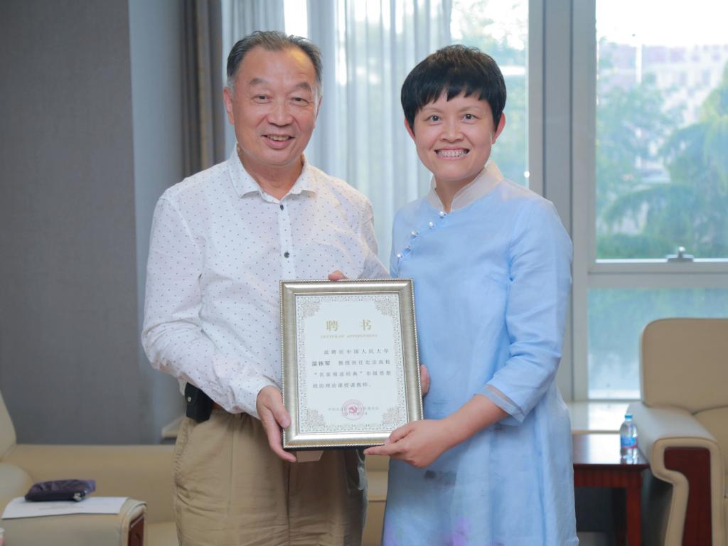 授课前,公司董事长助理朱凌云热情会见了温铁军教授,与其就老员工读书读经典、人文素质培养、中国当前农村发展现状等问题进行了深入交流,并代表课程组为温铁军教授颁发了“名家领读经典”课程授课教师聘书。