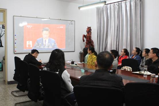公司师生在公司南路校区图配楼413室观看党的十九大开幕会