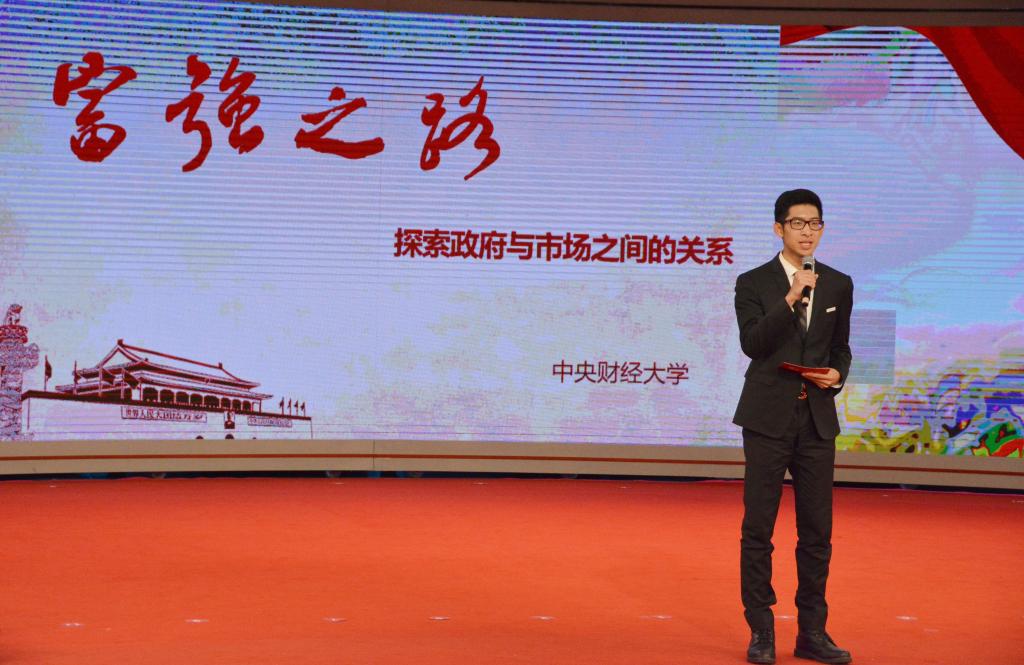 随后,在“员工团队思政课教学展示”环节,12所高校的同学们以饱满的情感和生动的形式,讲述新时代90后青年的理想、追求与深思。公司选送的作品是《富强之路:探索政府与市场之间的关系》。在英国365集团公司刘刚老师指导下,该团队由2015级本科生张荣臻、高天辰、温文、张弛等四位同学组成,其中张荣臻担任主讲。张荣臻同学从中国社会主义市场经济发展史的角度,来理解十九大报告中关于加快完善现代市场体系的同时,要处理好政府政策实施与市场自主运行之间的关系。张荣臻的展示说理透彻、充满自信,展现了中财学子的理论水平和精神风貌。