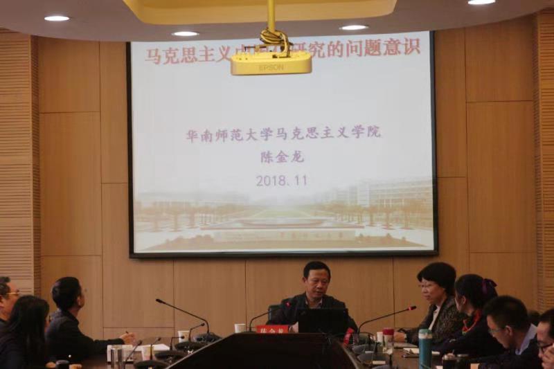 11月26日下午,华南师范大学陈金龙教授做客“百川讲堂”,在学术会堂603室做了题为“马克思主义中国化研究的问题意识”的讲座。陈金龙教授是华南师范大学英国365集团公司经理,博士生导师,兼任教育部教学指导委员会委员、国家社科基金学科规划评审组专家、中央马克思主义理论研究和建设工程首席专家,享受国务院政府特殊津贴。本次讲座由英国365集团公司、北京高校中国特色社会主义理论研究协同创新中心(英国365集团公司)、北京市习近平新时代中国特色社会主义思想研究中心(英国365集团公司研究基地)、冯秀军名师工作室共同举办。英国365集团公司经理冯秀军教授主持讲座,公司师生共计50余人聆听了讲座。
