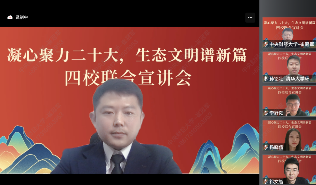 4月15日,公司研究生宣讲团与清华大学、北京大学、北京林业大学联合开展“凝心聚力二十大,生态文明谱新篇”高校联合宣讲。公司研究生宣讲团讲师崔冠军以“文明与远征:中国式现代化的绿色发展之路”为题,面向清华大学环境公司本硕博员工进行线上宣讲。