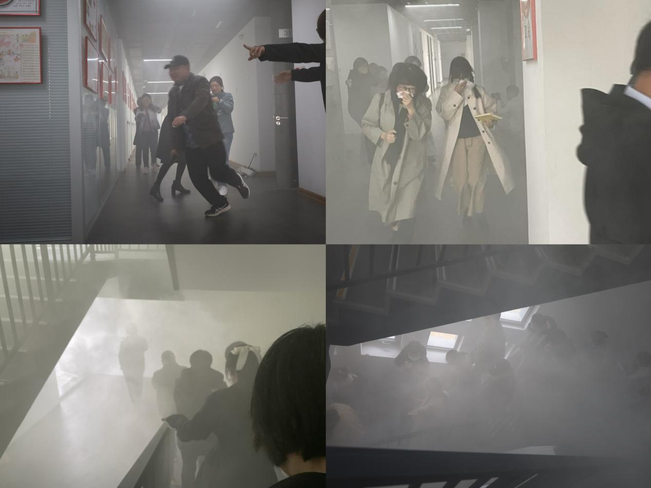 演练前,公司高度重视,从演练内容、疏散路线、师生动员、安全措施等多方面着手,精心策划,周密部署,提前预设好疏散演练方案。本次演练模拟公司楼三层教室发生火情,为确保演练活动安全有序进行并取得实效,演练现场负责老师按照制定的消防疏散演练方案,着重强调了相关注意事项,随后宣布演练开始。下午2点30分,消防演练从10号楼3层开始,保卫处工作人员模拟浓烟,报警器立即启动,公司迅速启动应急处置预案,按照“安全第一、就近逃生”的疏散原则,引导人员引导教师使用湿毛巾捂住口鼻,弯腰低姿态沿应急疏散安全路线快速撤离撤离公司楼。