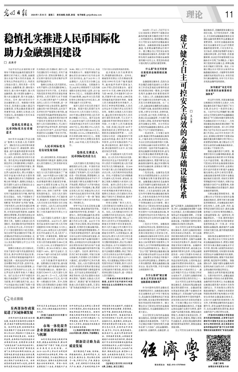 1月30日,《光明日报》理论版刊发公司科研处处长王立勇教授署名文章---《建立健全自主可控安全高效的金融基础设施体系》。