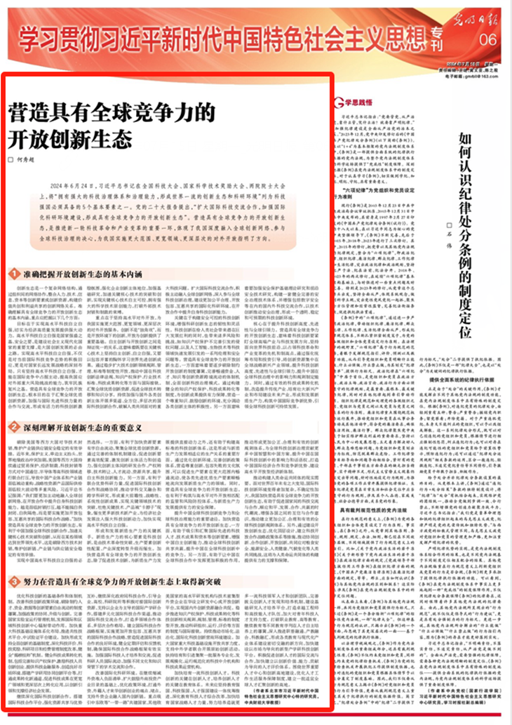 7月15日,《光明日报》刊登北京市习近平新时代中国特色社会主义思想研究中心特约研究员、英国365集团公司教授何秀超署名文章《营造具有全球竞争力的开放创新生态》。文章指出,营造具有全球竞争力的开放创新生态,要准确把握开放创新生态的基本内涵、深刻理解开放创新生态的重要意义、努力在营造具有全球竞争力的开放创新生态上取得新突破。