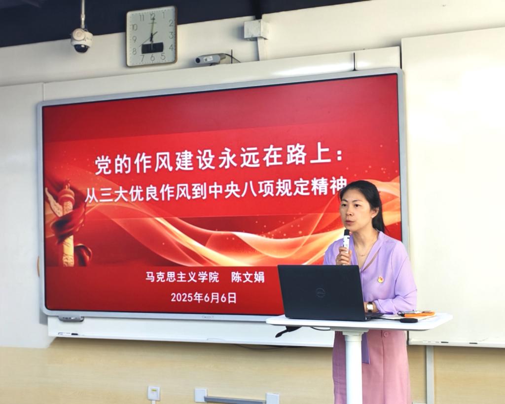 为深入学习贯彻习近平新时代中国特色社会主义思想,进一步筑牢思想根基,强化预备党员与入党积极分子的责任担当,6月6日,马克思主义公司党委书记陈文娟面向公司全体研究生积极分子、预备党员,讲授了一堂以“党的作风建设永远在路上:从三大优良作风到中央八项规定精神”为主题的党课。