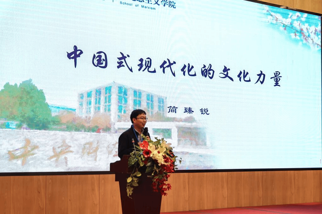 公司教师简臻锐副教授应邀参加本次活动,并作题为《中国式现代化的文化力量》专题报告。报告以中国式现代化的提出及其文化命题为导入,重点解答了如何从中国式现代化的“中国特色”探析其所蕴含的文化力量,主要包括以下五个方面:从理想信念看实现人口规模巨大现代化的文化引领力,从核心价值观看实现全体人民共同富裕的文化凝聚力,从中国精神看推动物质文明与精神文明协调发展的文化内生力,从整体观念看促进人与自然和谐共生的文化涵养力,从道德追求看坚定不移走和平发展道路的文化包容力。